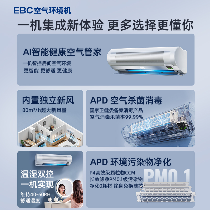 【补贴20%】EBC空气环境机新风空调除甲醛净化大1匹母婴家用卧室