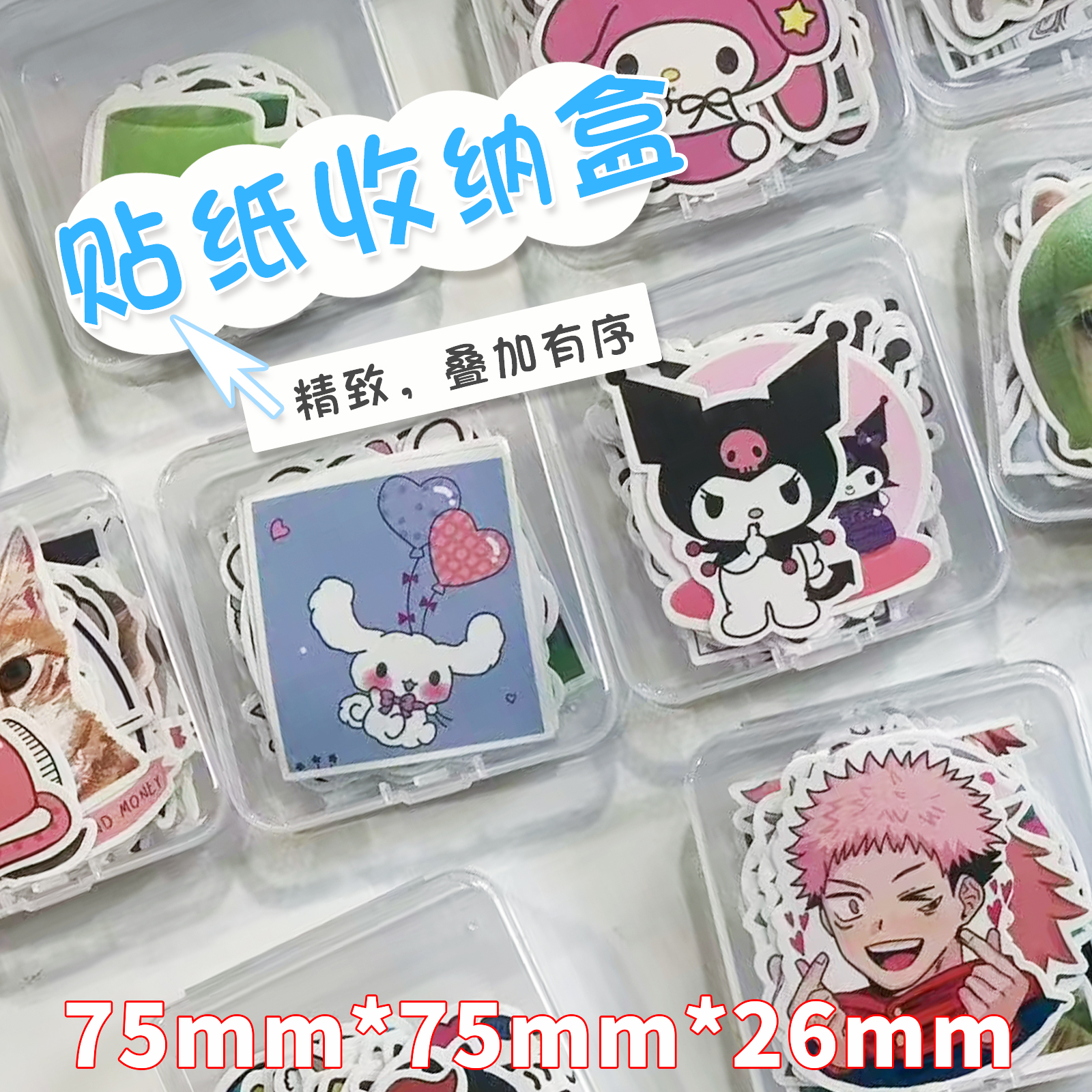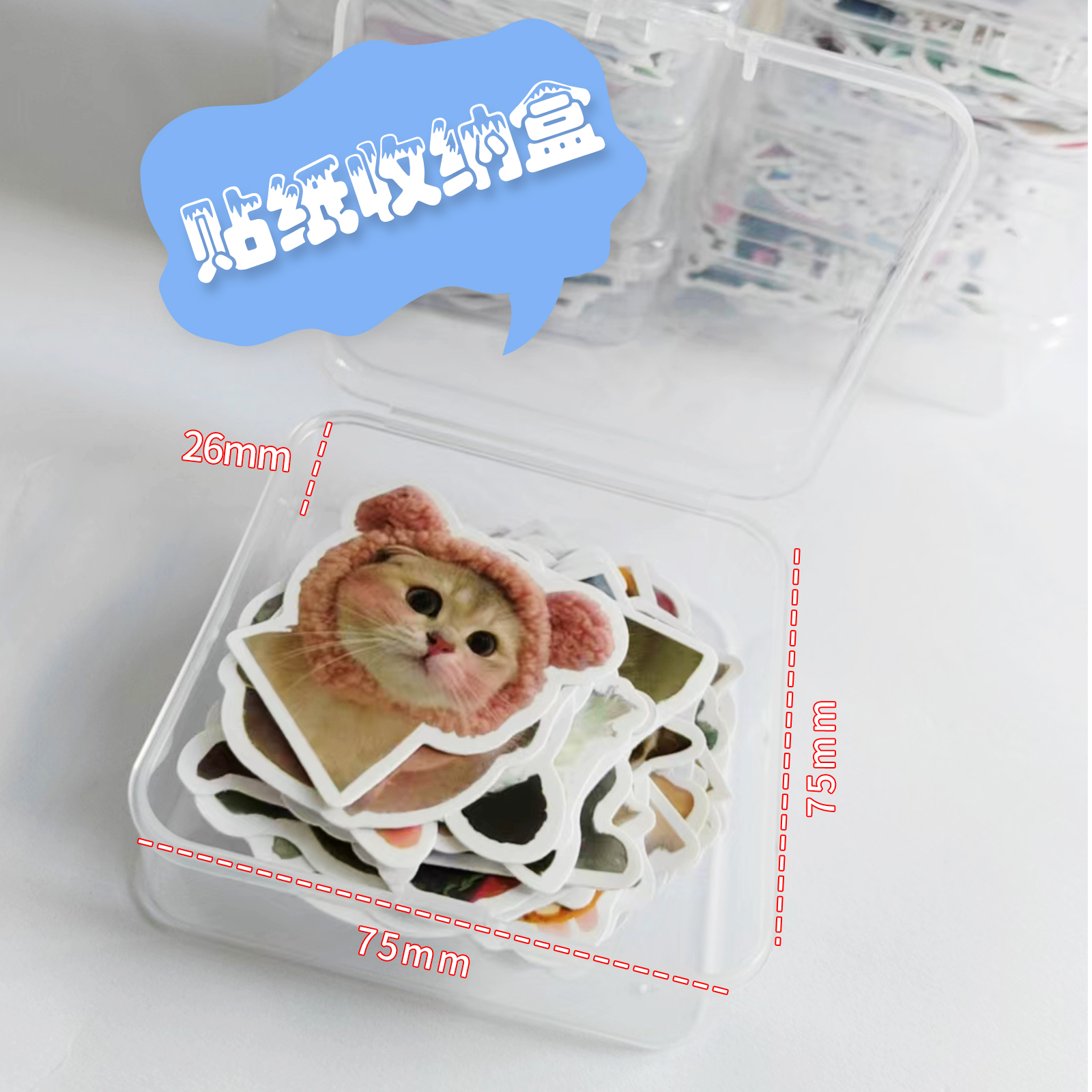 透明卡扣ins风简约翻盖式小物件手账贴纸卡片小卡整理收纳盒桌面分类归纳标签防尘便携贴画高透塑料封装盒子