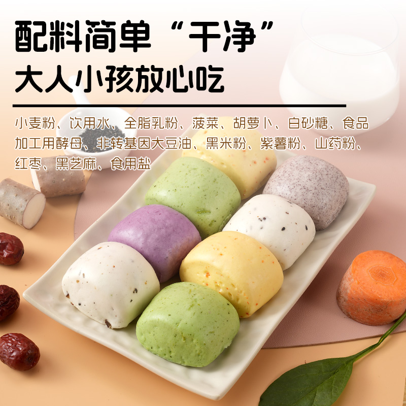 果蔬小馒头儿童营养早餐速食品奶香馒头批发整箱小零食面食纯手工