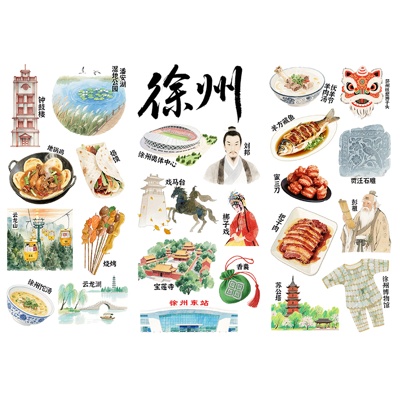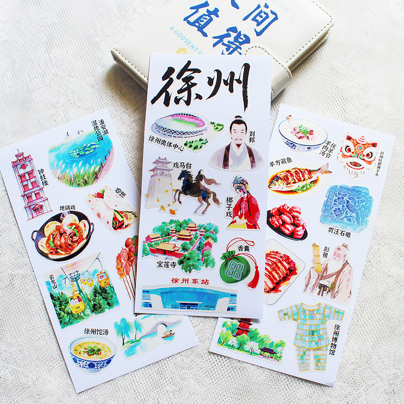 徐州旅游手帐贴纸江苏城市家乡建筑文化美食风俗非遗手抄报贴画