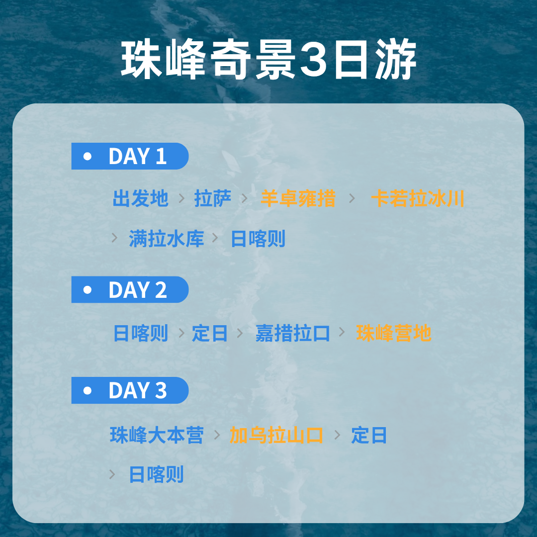 西藏拉萨羊湖冰川珠峰大本营三日两晚纯玩3日旅游跟团游