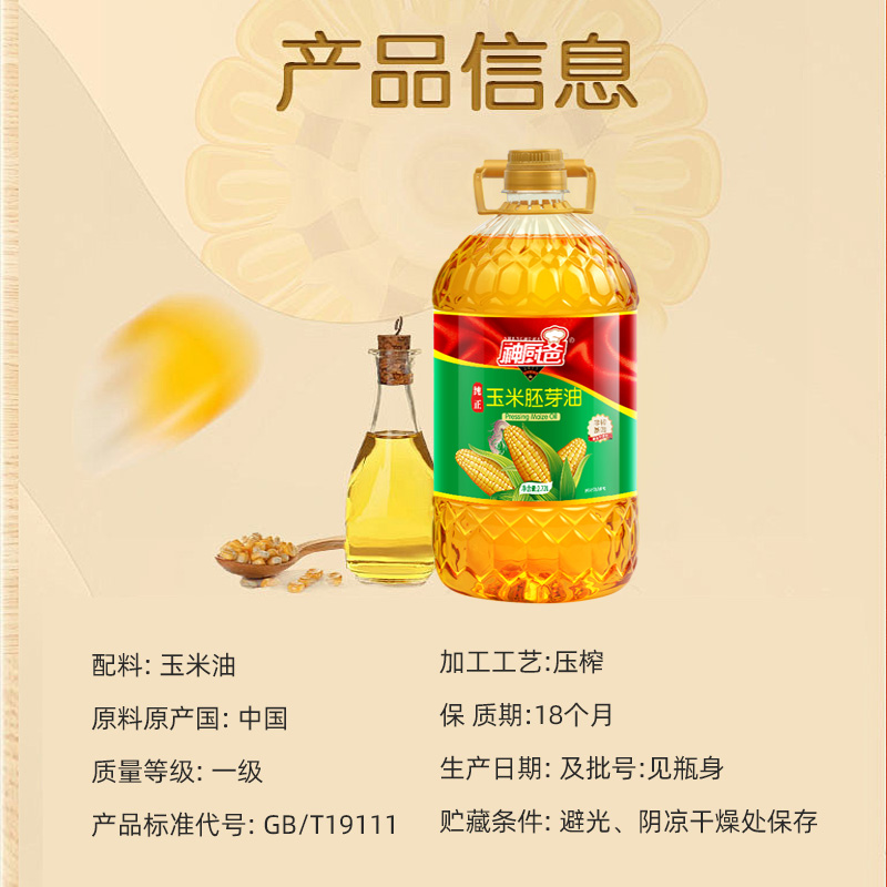 神厨爸压榨一级玉米油非转基因玉米胚芽植物油食用油烘焙油家庭装