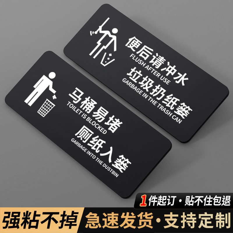 随手冲一冲干净又轻松厕所标识牌卫生间标语贴纸便后冲水提示牌洗手间亚克力告示牌男女洗手间马桶易堵告示牌