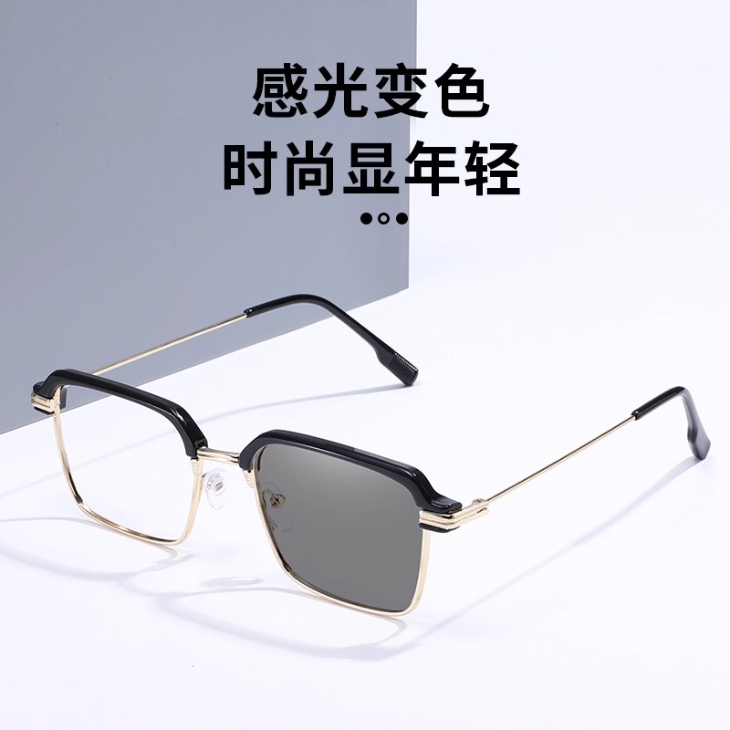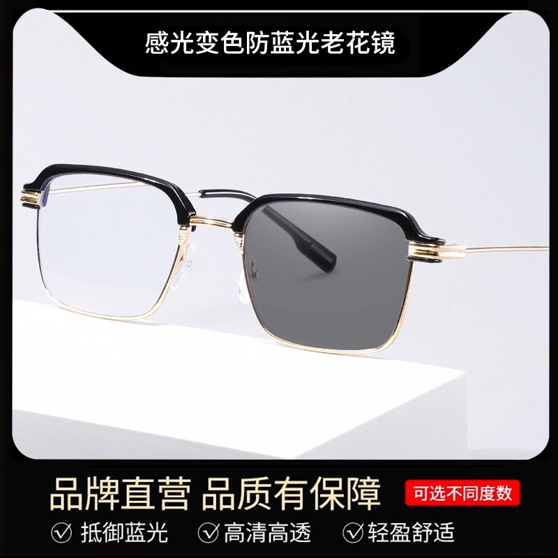 左丘同款变色老花镜男士中老年人高清防蓝光室内外两用老光眼镜男