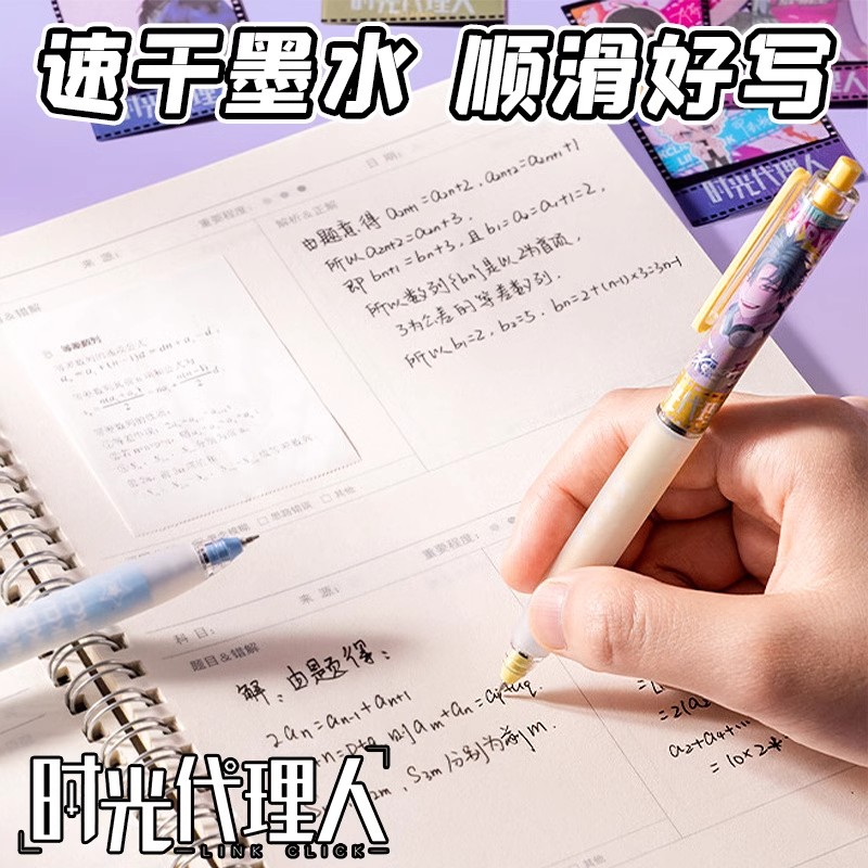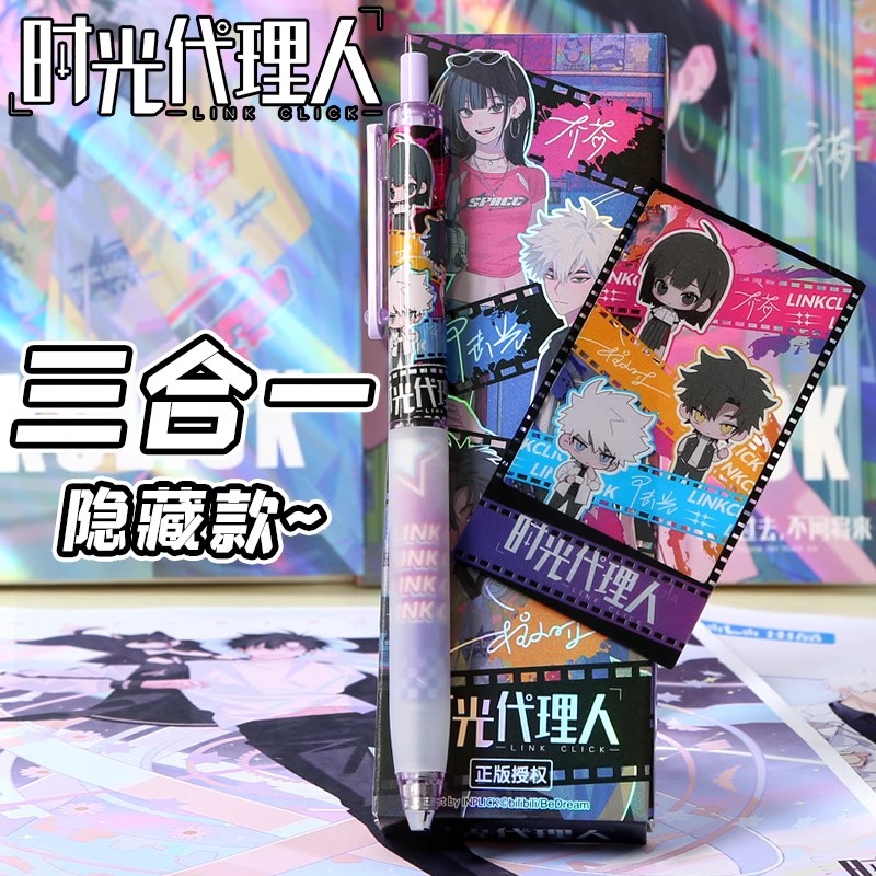 时光代理人联名笔文具盲盒笔中性笔高颜值按动笔速干顺滑初中生专用超帅写字程小时乔苓奇酱灼热陆光夏斐周边