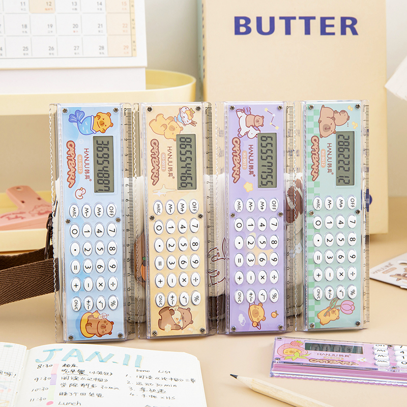 萌趣直尺子计算器迷你可爱两用微型多功能创意折叠有计算机尺子15cm高颜值少女心小清新学生学习用品文具奖品