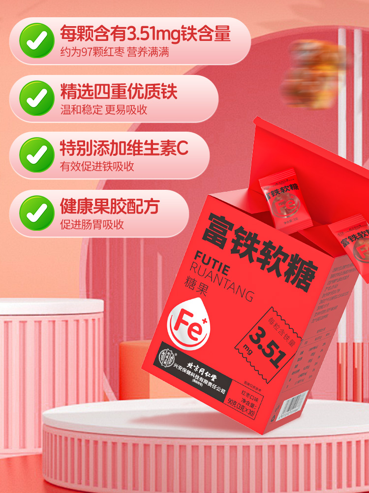 北京同仁堂富铁软糖铁剂孕妇补铁补血贫血女性专用官方旗舰店正品