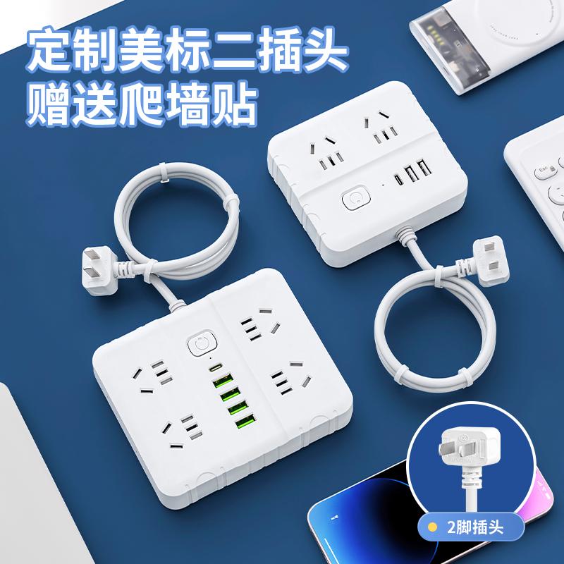 两脚插座2孔插头排插两项插排带usb插板带长线扦座二相双头接线
