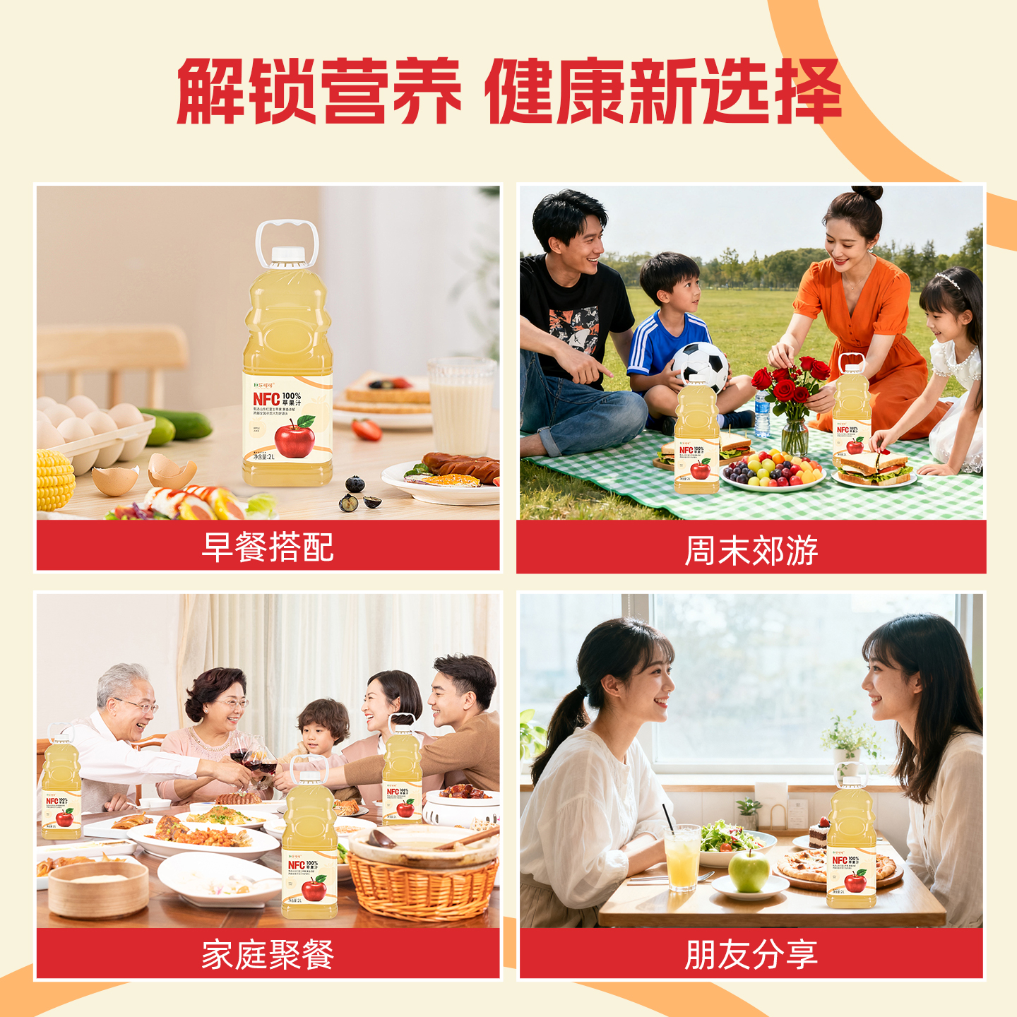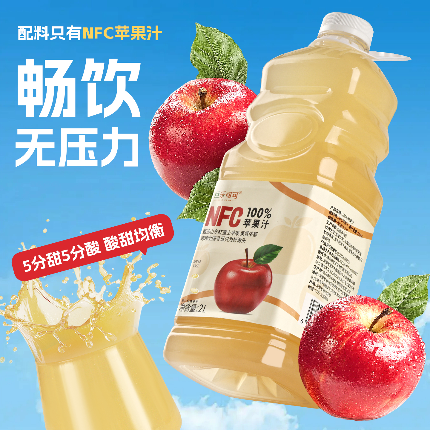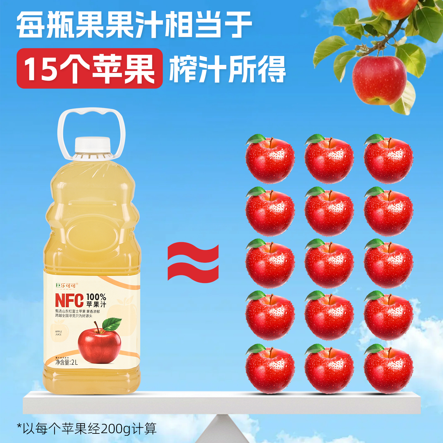 【买一送一】100%NFC苹果汁鲜榨原汁无添加清爽解腻纯果汁饮料2L