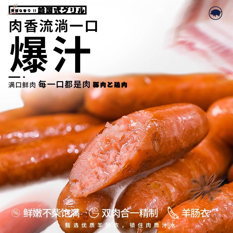 锋味派烤肠脆骨纯肉火山石香肠芝士热狗肉肠空气炸锅火腿肠烧烤