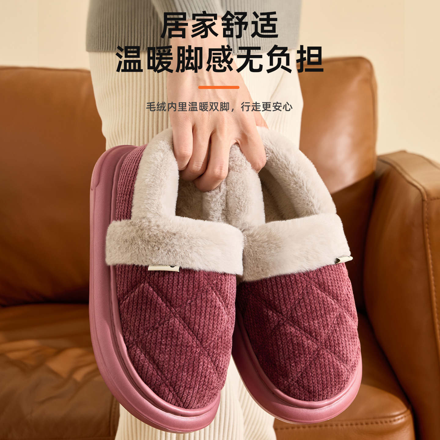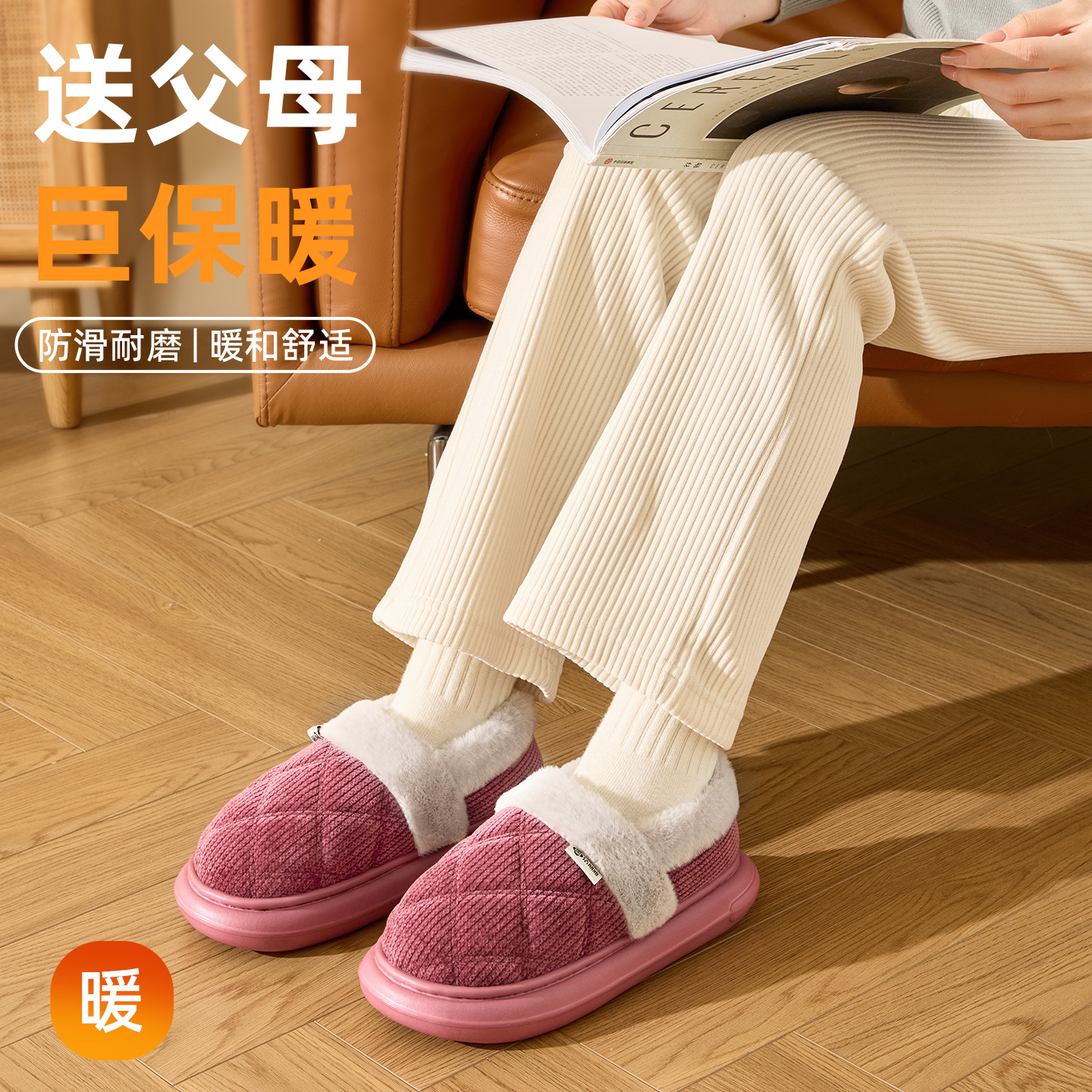 洁丽雅老人棉鞋女士冬季家居家加绒加厚保暖棉拖鞋男款冬天外穿