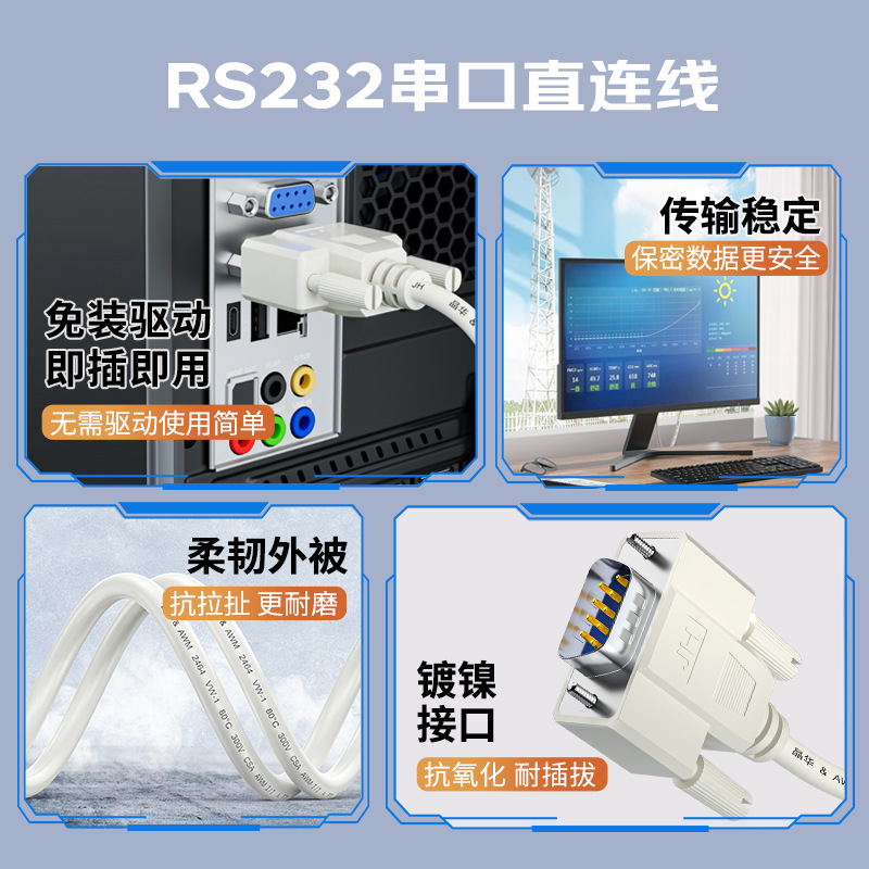 串口线直销DB9针对针串口线1.5米232数据线网线电脑适配