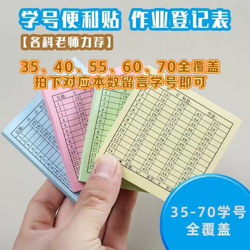 交作业登记便利贴情况统计作业完成记录贴打卡登记表反馈贴纸学号留言开学老师学科