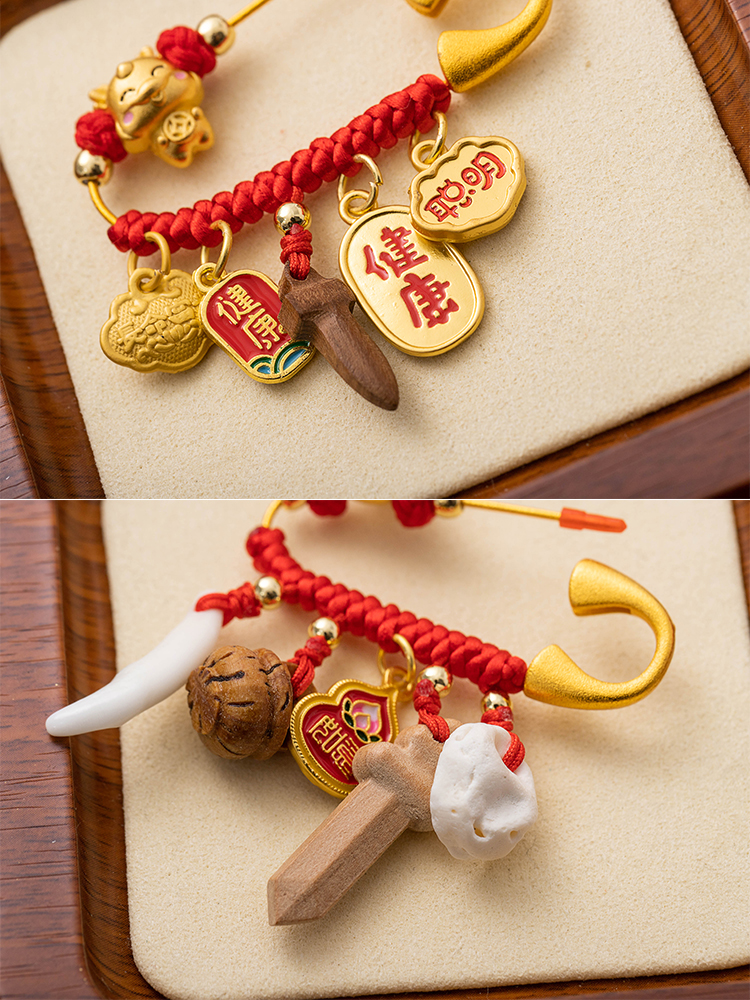 狗牙别针龙宝宝外出配饰婴儿童桃木平安挂件孕妇胸针福袋朱砂安全