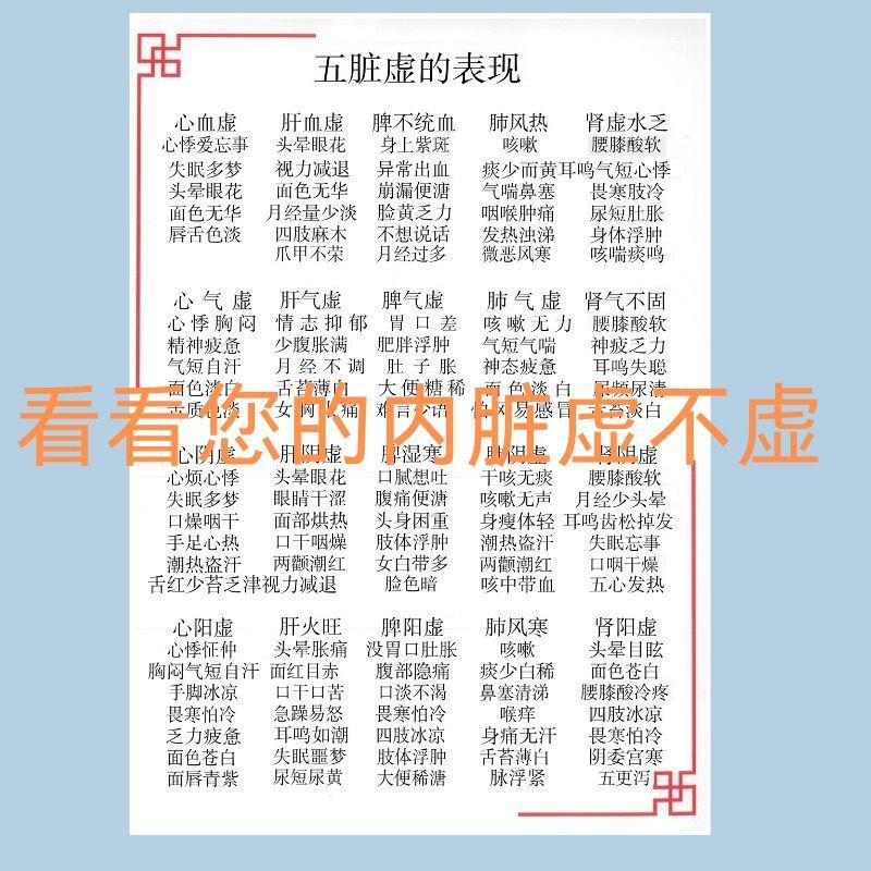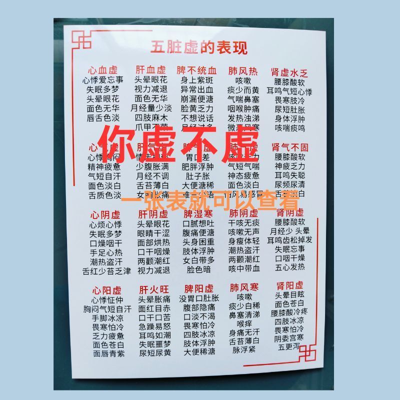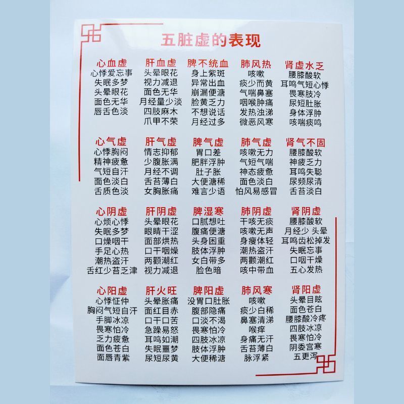 A4印刷中医诊断五脏病症自查表五脏虚实症状总结单面印刷竖版