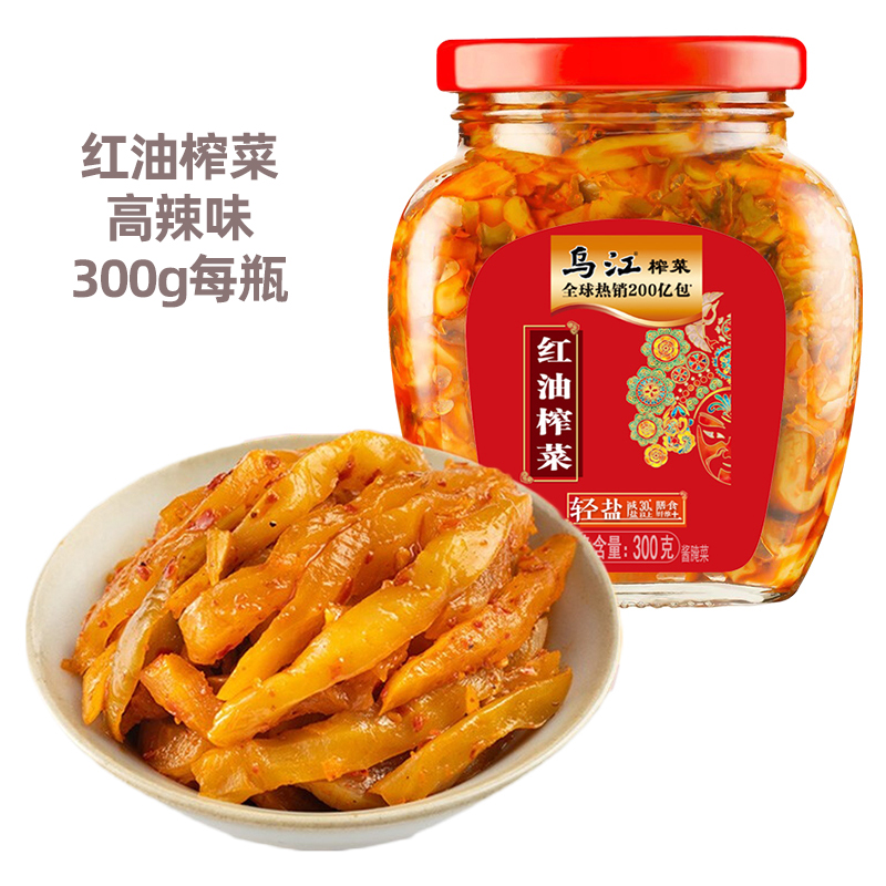 乌江榨菜瓶装口口脆清淡脆嫩开味下饭菜微辣红油300g麻辣鲜脆新鲜