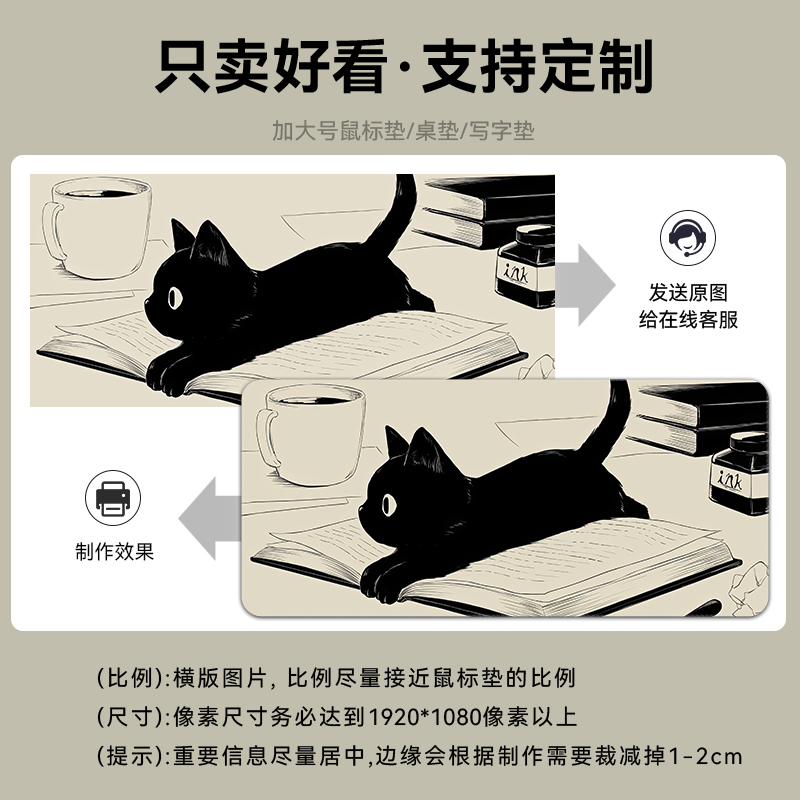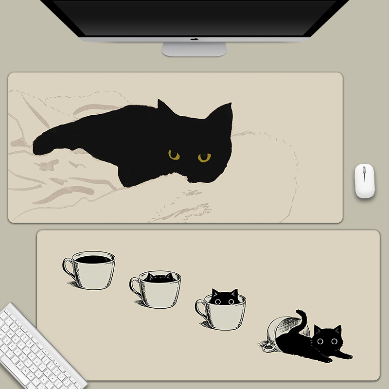 可爱猫咪鼠标垫超大办公桌垫男女生定制防滑电脑键盘垫学生书桌垫