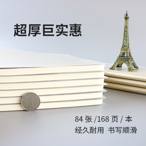 复古牛皮纸笔记本超厚空白本子加厚白纸本草稿本学习可平摊高颜值本记事本日记本a4a5小方格写作本大学生初中