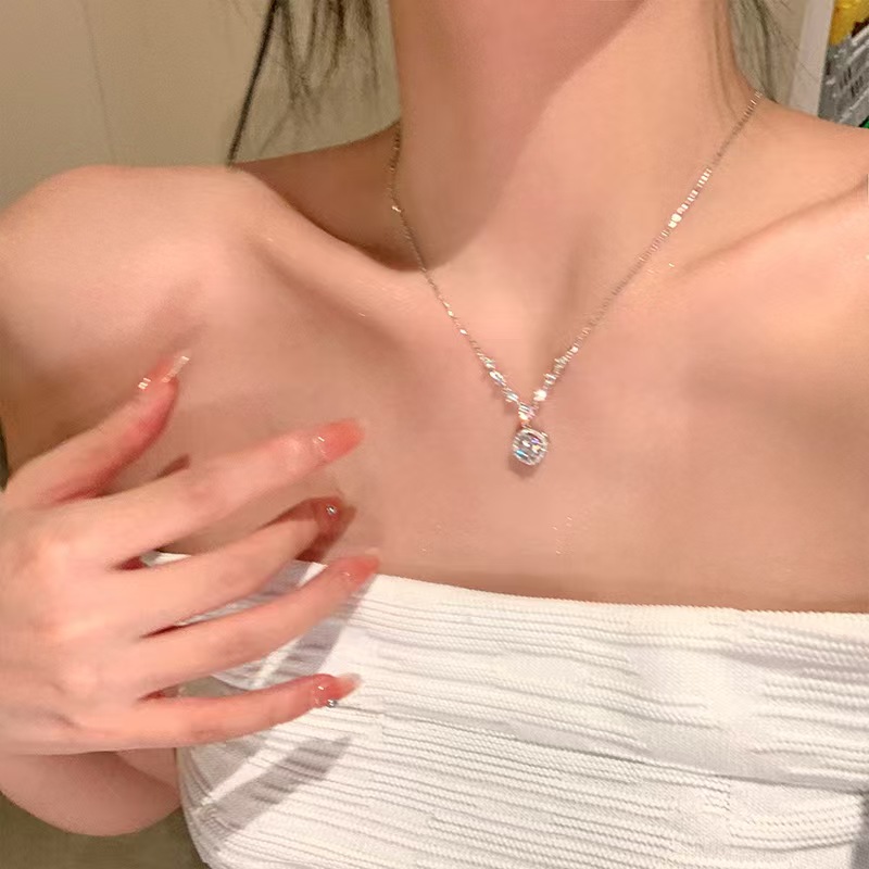 通体方糖项链女轻爆闪链颈链高级配饰感锆石奢小众锁骨