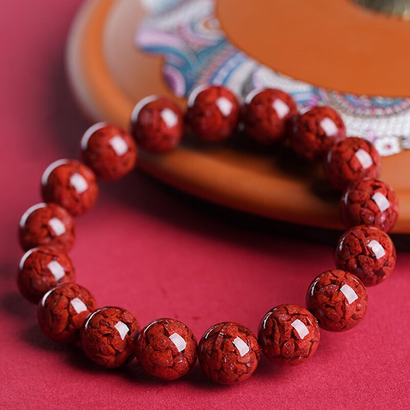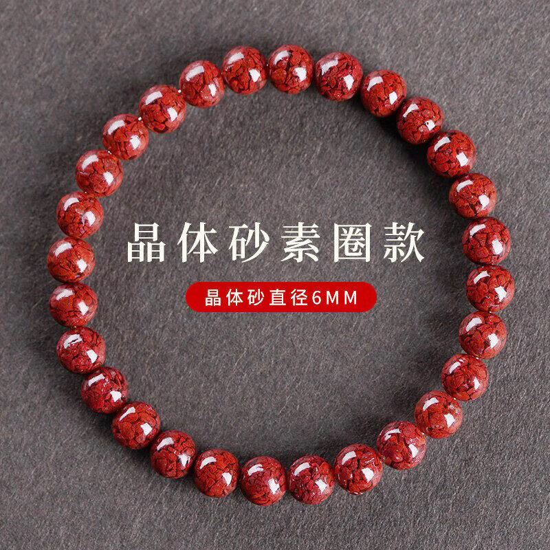 原矿高含量晶体砂手串朱砂男女款手链本命年圆珠红饰品国货佩戴