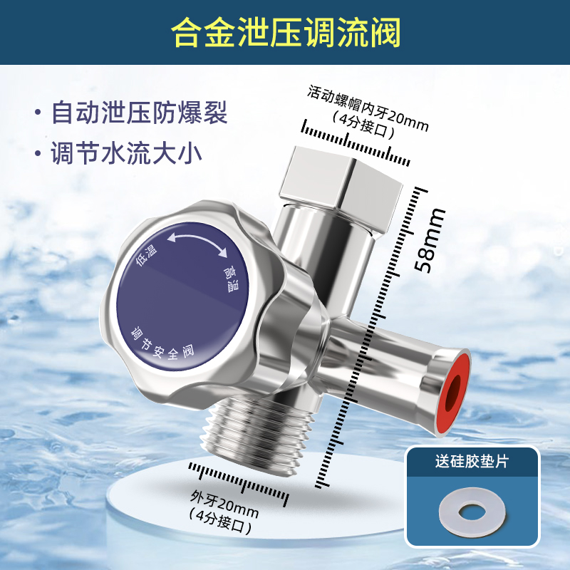 安拉贝尔即热式电热水器配件三档花洒头泄压调流阀进出水管隔电墙