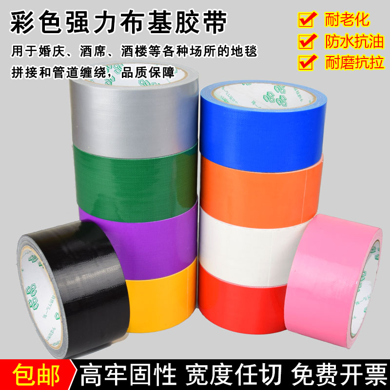 黑色布基胶带高粘度防水防漏易撕地毯胶带管道捆扎修复补丁贴人造