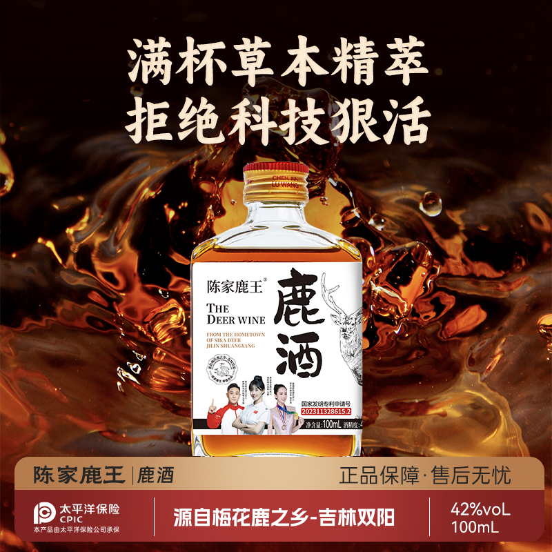陈家鹿王玉鹿酒纯正高粱酒鞭温补酒玉鹿体验茸多规格装42度100ml
