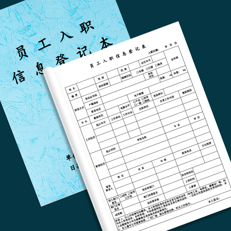 员工入职信息登记本公司工地商场员工信息记录本登记记录表入职登记本员工工人信息登记表定制定做