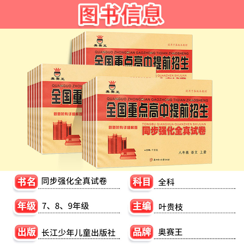 奥赛王丨全国重点高中提前招生同步强化全真试卷 全国初中通用 七八九年级语数英政史地物化生测试卷详细解答
