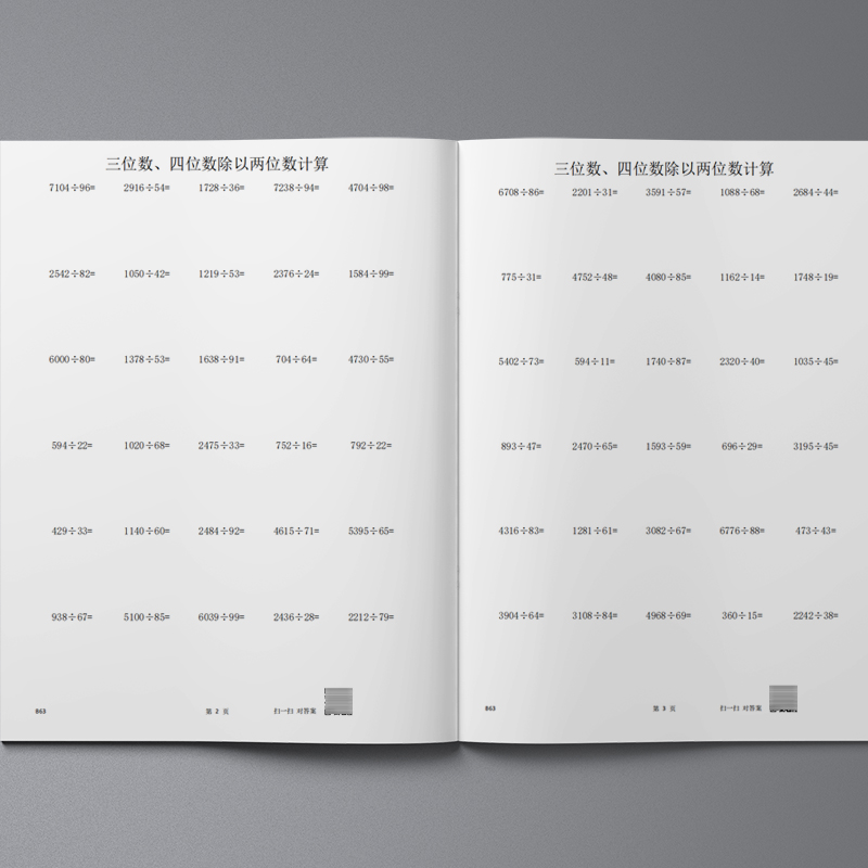 四年级上册除数是两位数的除法商数是两位四位三位除以两位练习本