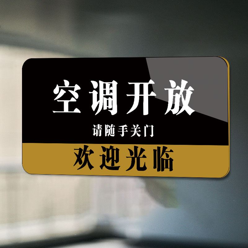 空调开放提示牌正在营业挂牌网红风营业中挂牌推门请进创意标志牌