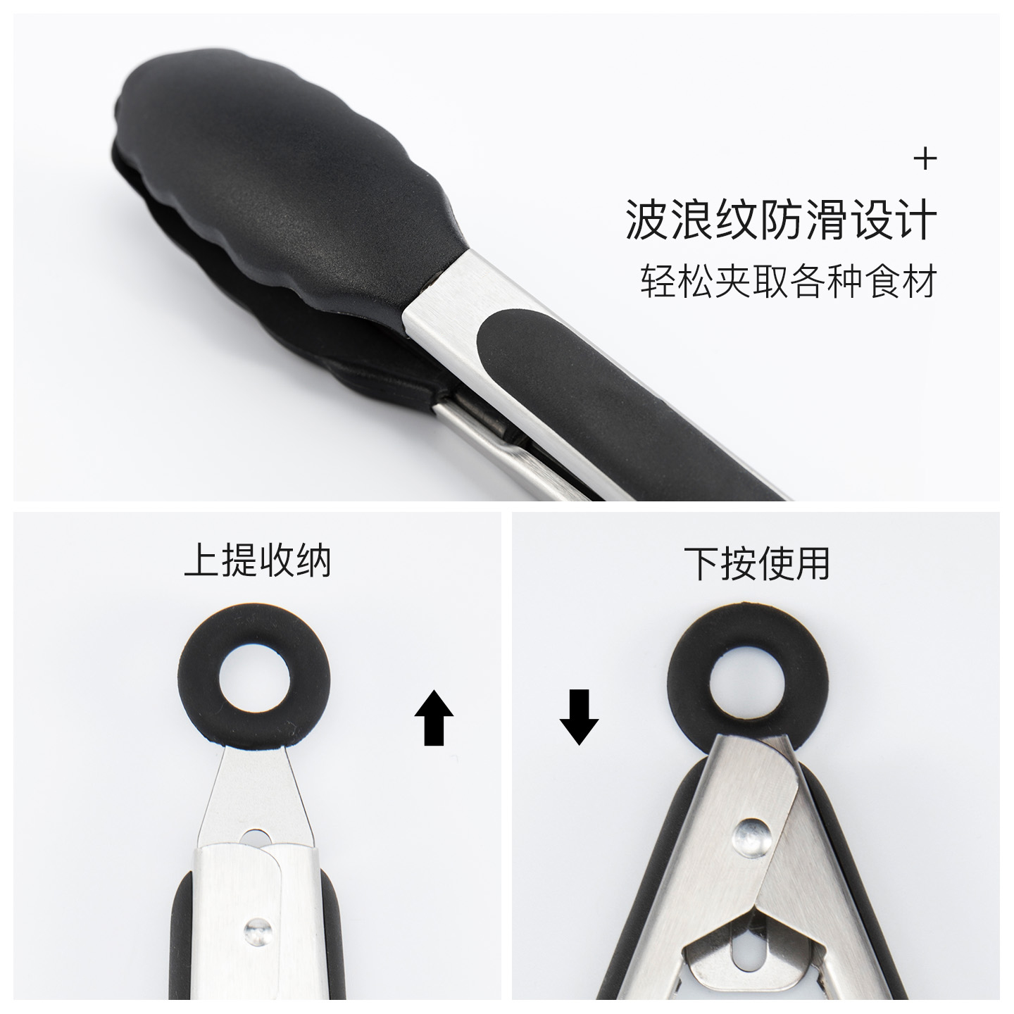 硅胶夹子耐高温厨房食物油炸不锈钢煎牛排炒菜烧烤专用食品夹防烫