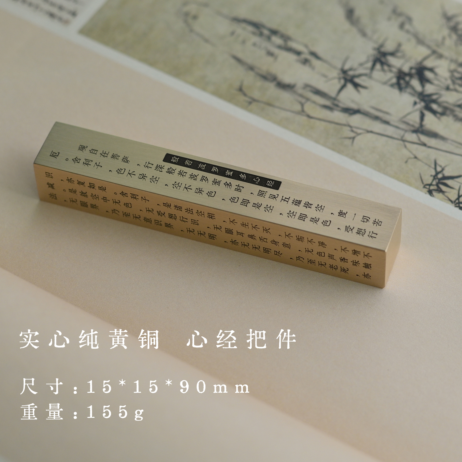 微精雕刻心经手把件纯黄铜镇纸摆件小巧镇尺把玩定制文房好物压书