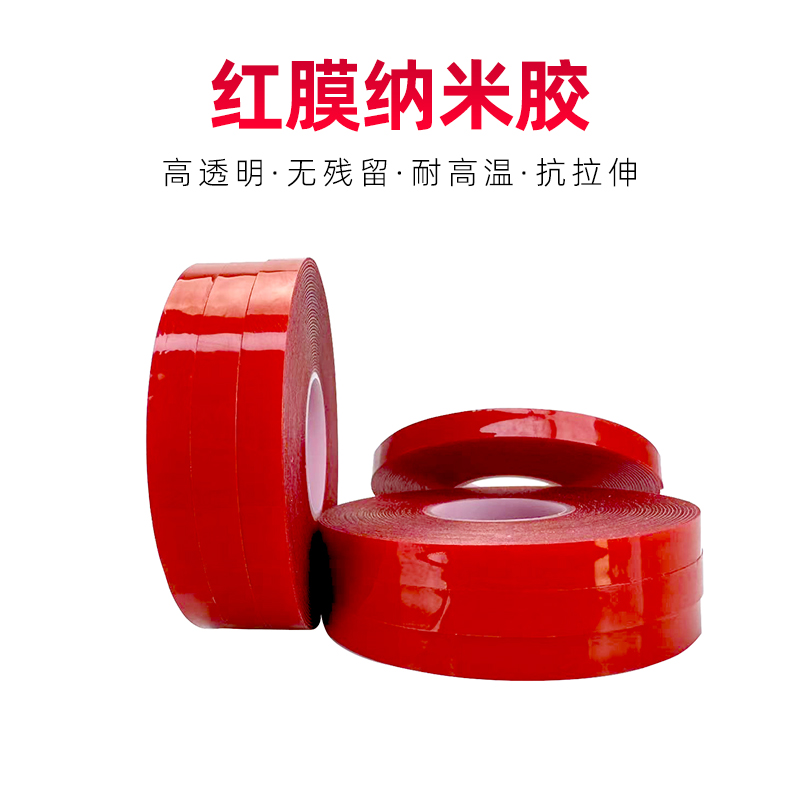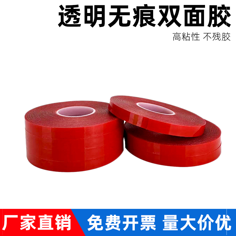 双面胶高粘度红膜亚克力胶带强力无痕透明防水防粘耐高温胶布婚庆装饰固定墙面不伤墙重复用自粘贴双面胶带