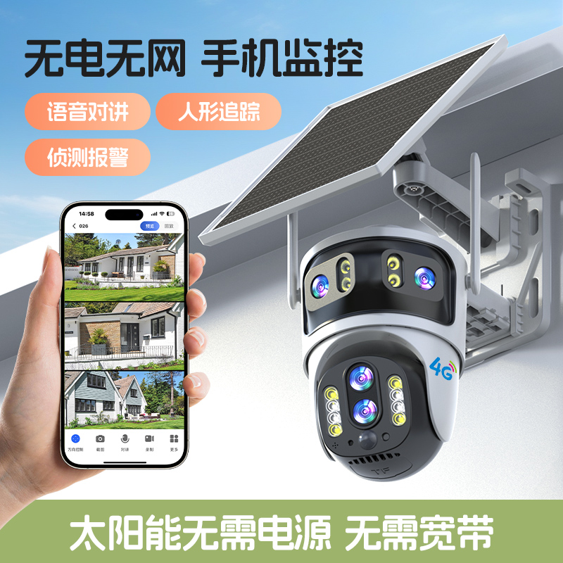 太阳能监控摄像头360度无死角室外手机远程4G无需网络夜视免插电