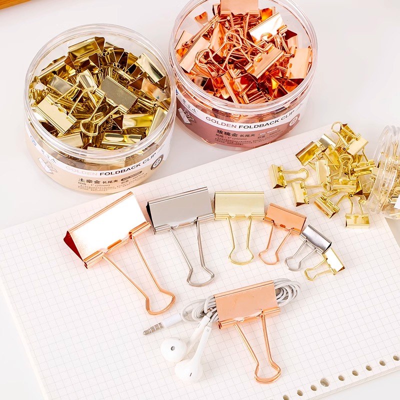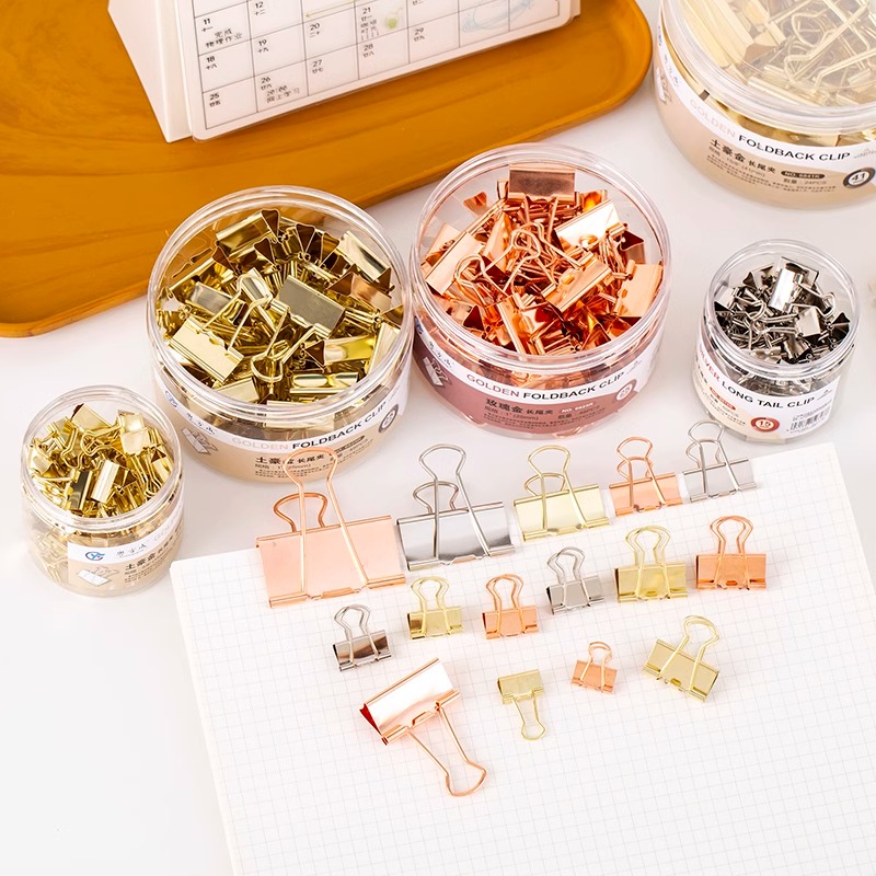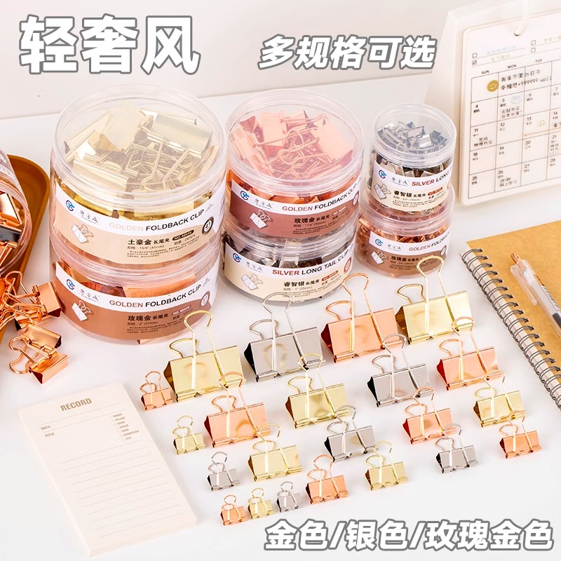 银色长尾夹高颜值大号25mm燕尾夹金属文件夹子混合装凤尾夹铁票夹中号小号51mm玫瑰金19mm书夹32mm试卷夹