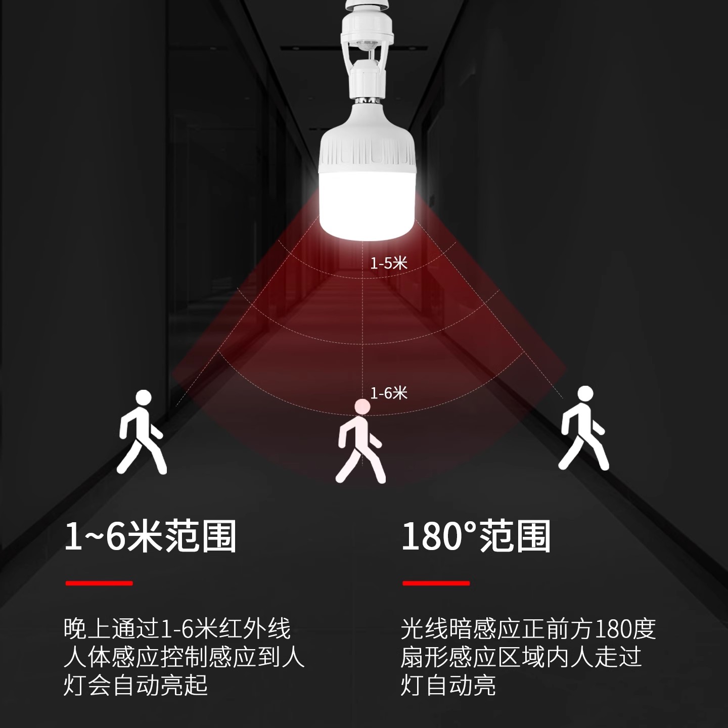 带线开关智能雷达红外线人体感应灯泡灯头E27螺口免布线楼梯过道
