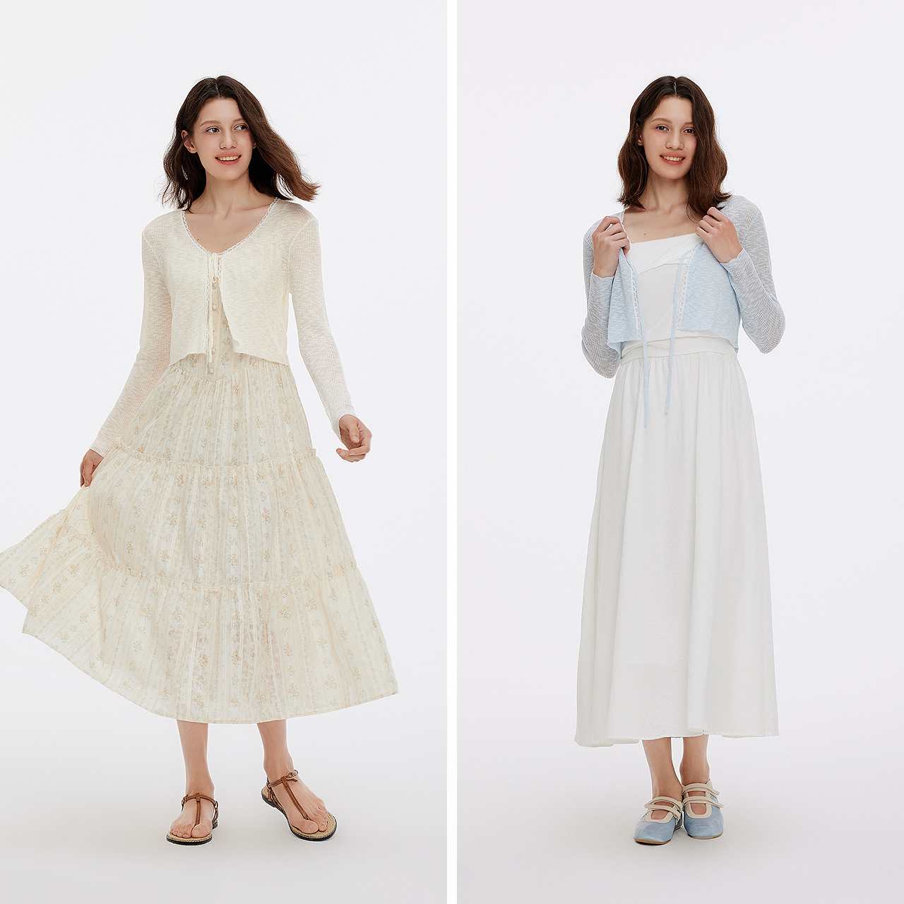 拉夏贝尔/La Chapelle薄款条纹针织披肩衬衫外搭搭肩配裙子小坎肩