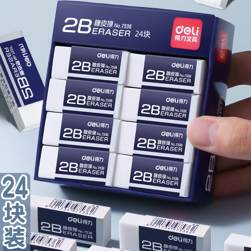 得力2比橡皮学习用品小学生素描橡皮擦美术生专用2B考试橡皮擦得干净少屑橡皮大小块橡皮白色较软幼儿园文具