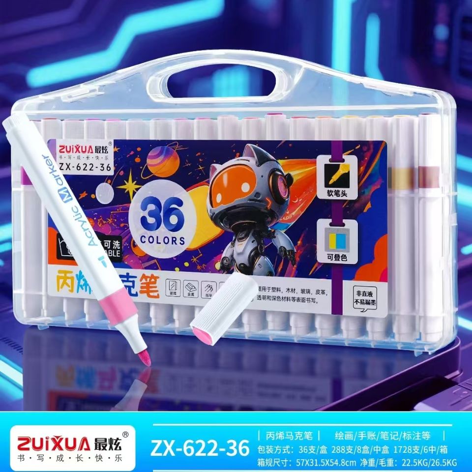 60色48色大容量丙烯马克笔盒装儿童专用可叠色不透纸幼儿园学生版软头丙烯笔可水洗水性水彩笔小孩画画笔