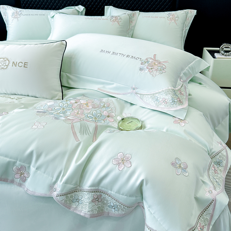 高级感A类母婴级长绒棉四件套全棉纯棉花卉刺绣被套床单床上用品