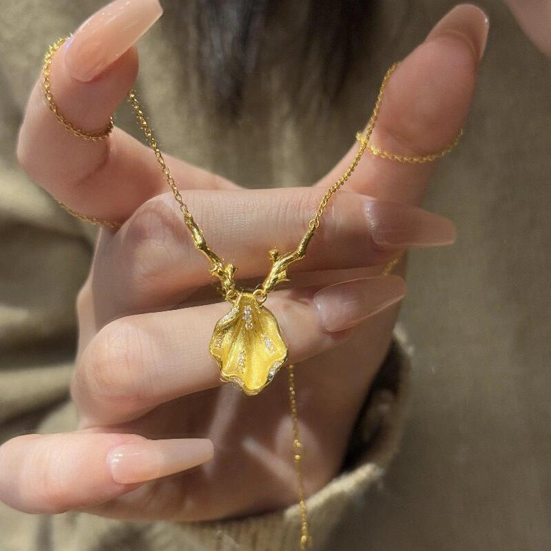 圣诞驯鹿拉丝贝壳项链小众百搭首饰精致轻奢高级感锆石饰品气质