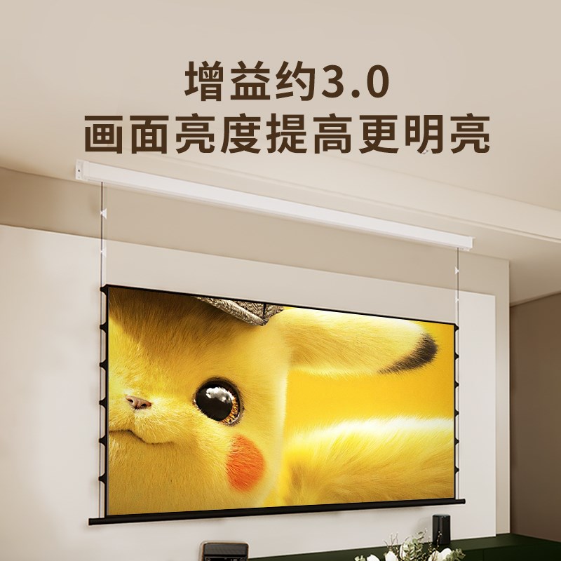 投影幕布智能光子悬浮家用电动升降高清高亮隐藏电动抗光幕布一体