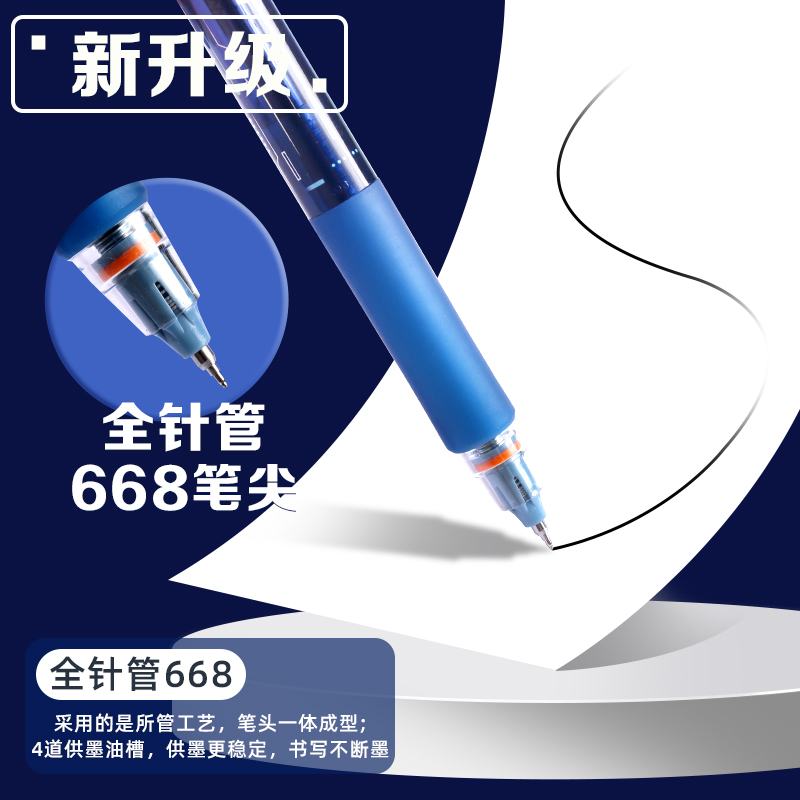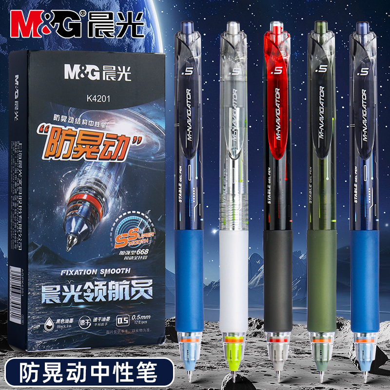 晨光领航员防晃动按动中性笔学生考试用刷题笔黑笔0.5mm加强全针管笔尖速干高颜值黑色大容量碳素笔签字笔