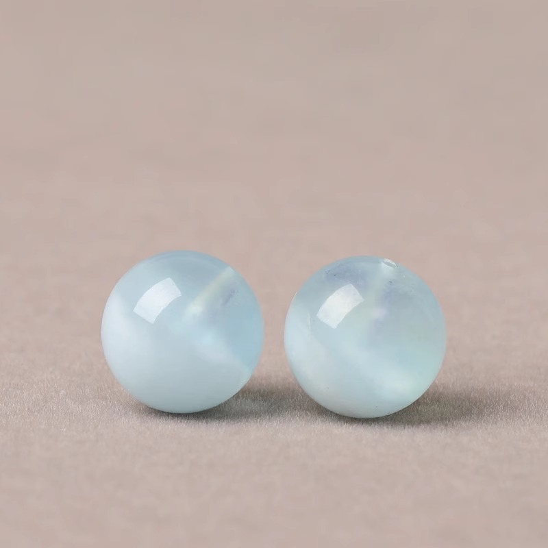 天然冰透海蓝宝散珠子聚宝盆水晶单颗圆珠diy手工串珠手链配饰珠