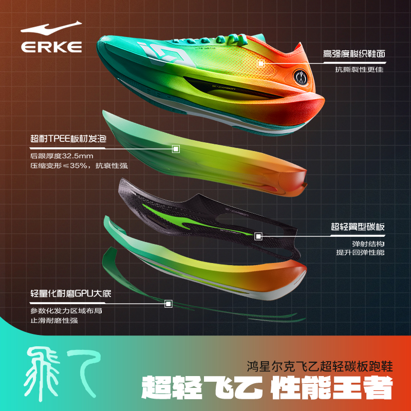 鸿星尔克飞乙跑步鞋专业马拉松竞速PB全掌碳板运动鞋超轻轻便跑鞋