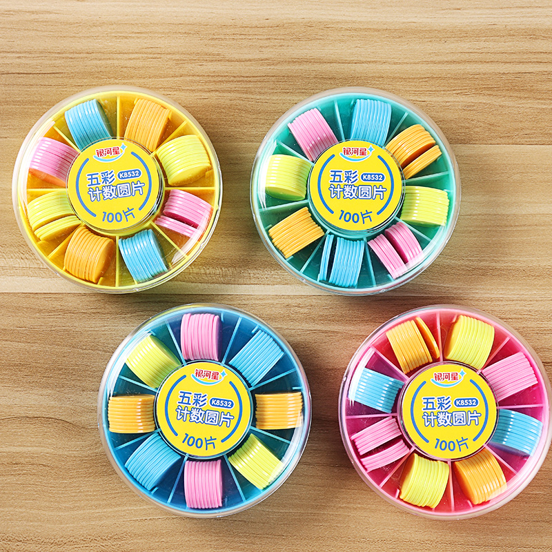 银河星儿童圆片教具数学五彩计数圆片小学生算术加减法数数片幼儿园数数学具塑料算数早教教具100片