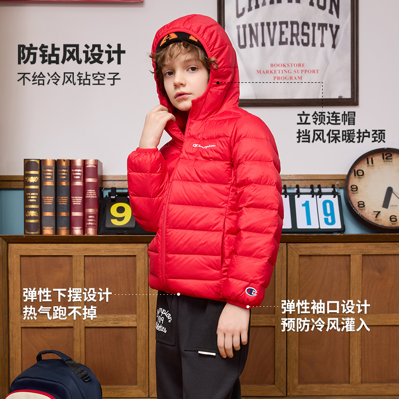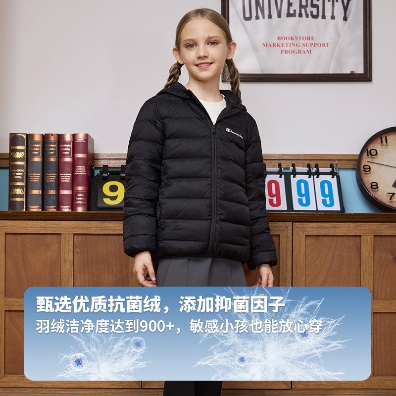 【三防抗菌】Champion冠军男女童装25冬季新款轻薄蓄热连帽羽绒服