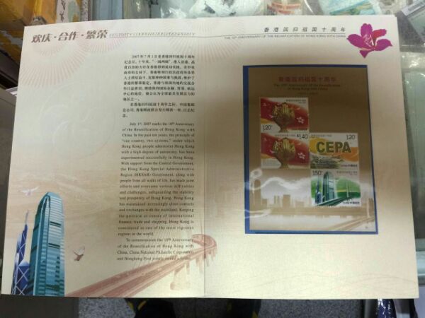 2007-17香港回归祖国十周年小版张带中港邮政联合发行折