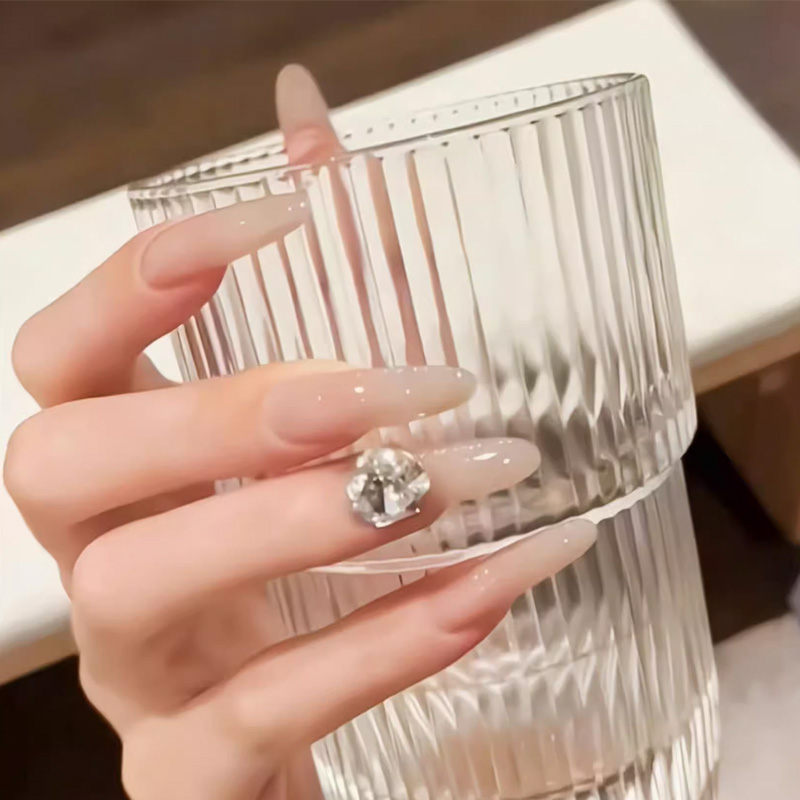 嬛嬛鸽子蛋半手工穿戴甲显白长款爆闪钻球裸色椭圆纯手工杏仁高级